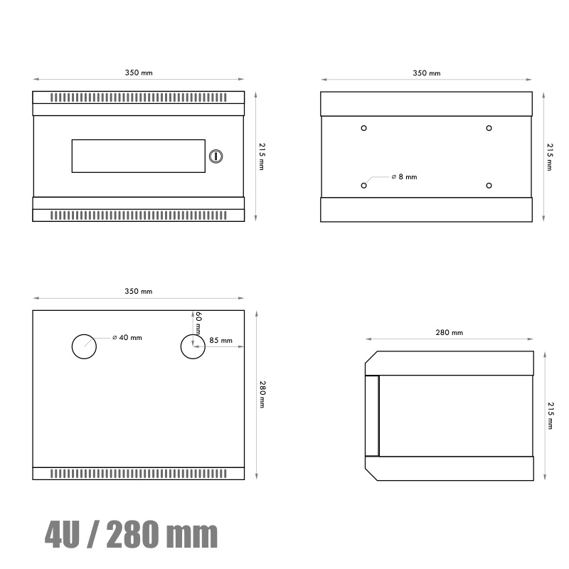 10" rack jednodílný 4U/280 DATACOM černý Skl.dv.