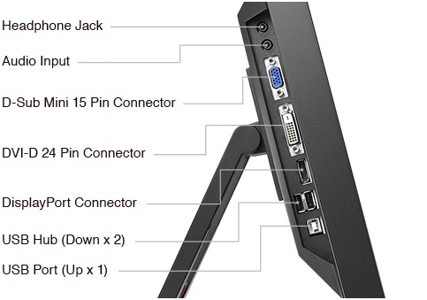 Monitor je vybaven vstupy DisplayPort, DVI-D a D-Sub, které jsou pohodlně umístěny na boku pro snadný přístup.
