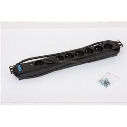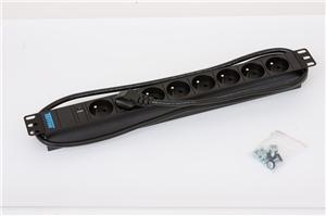19" rozvodný panel 1U, 8x zásuvka podle ČSN, max 16A, kabel 3x1,5mm, 2m + zástrčka univezál CZ-DE max. 16A, kontrolka, RAL 9005
