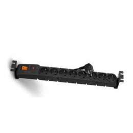 Napájecí panel 19" 8x230V,3m kabel, vypínač, přepěťová ochrana, tepelná pojistka (v balení není