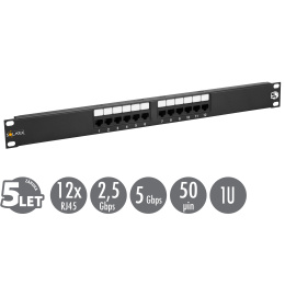 19" patch panel Solarix 12 x RJ45 CAT5E UTP 150 MHz černý 1U SX12-5E-UTP-BK