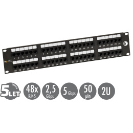 19" patch panel Solarix 48 x RJ45 CAT6 UTP 350 MHz černý 2U SX48-6-UTP-BK