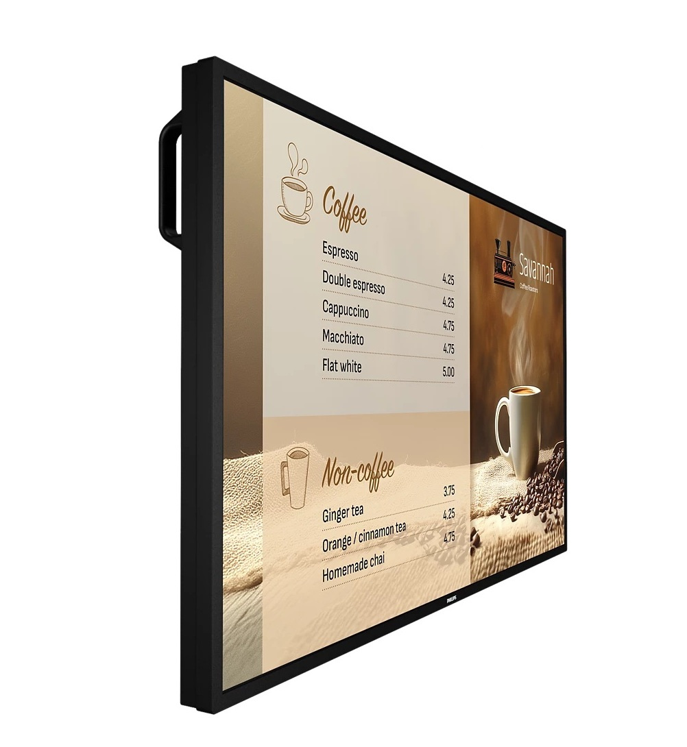 Dosáhněte vynikajících výsledků v náročných prostředích díky robustní řadě displejů Philips Signage 6000 pro nepřetržité použití. Díky vyššímu jasu až 800 nitů a možnosti přidat vzdálenou správu Philips Wave jsou ideální pro kuchyně, dopravní uzly a další podobná prostředí.