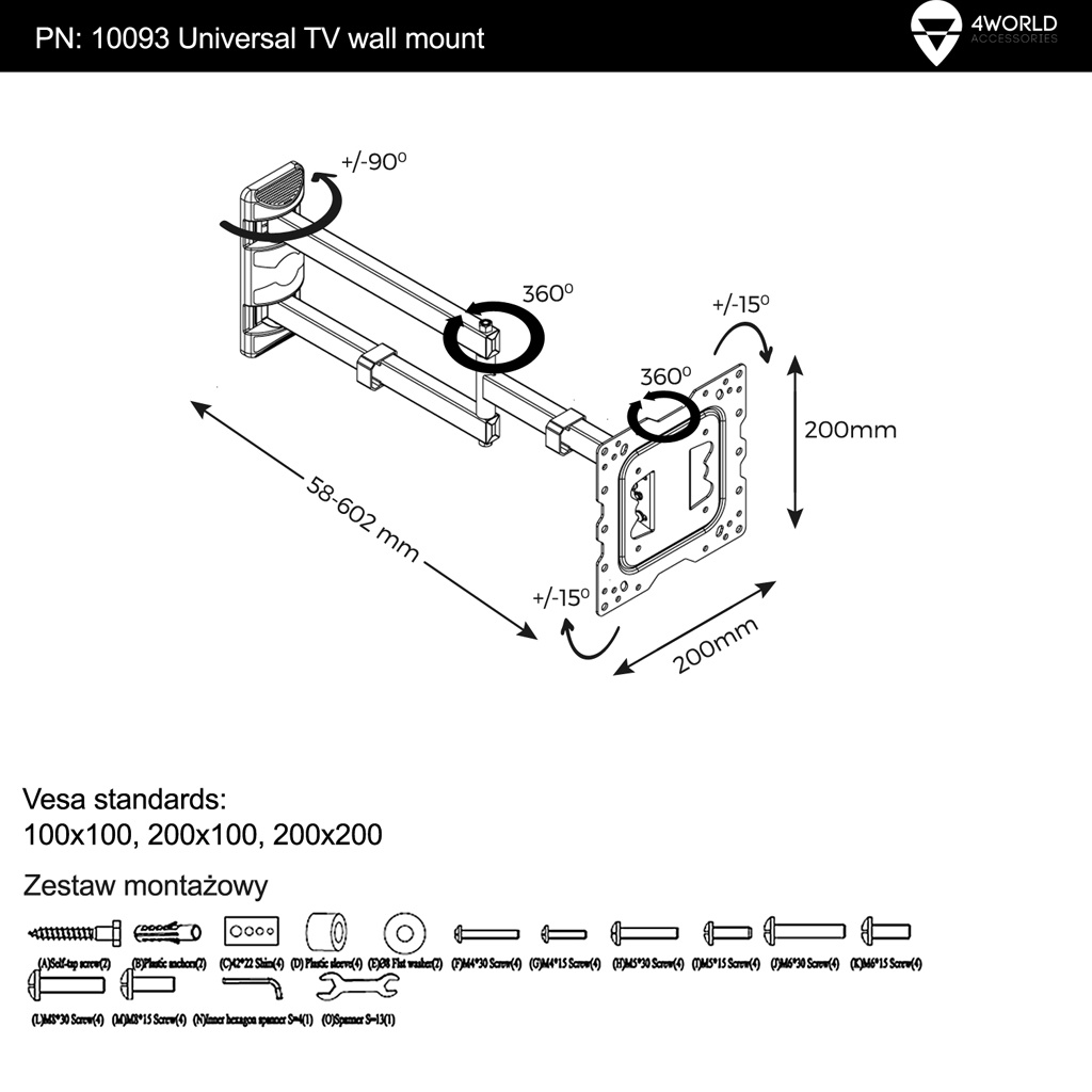 4World Držák pro LCD 15-43" sklopný/otočný max.40kg