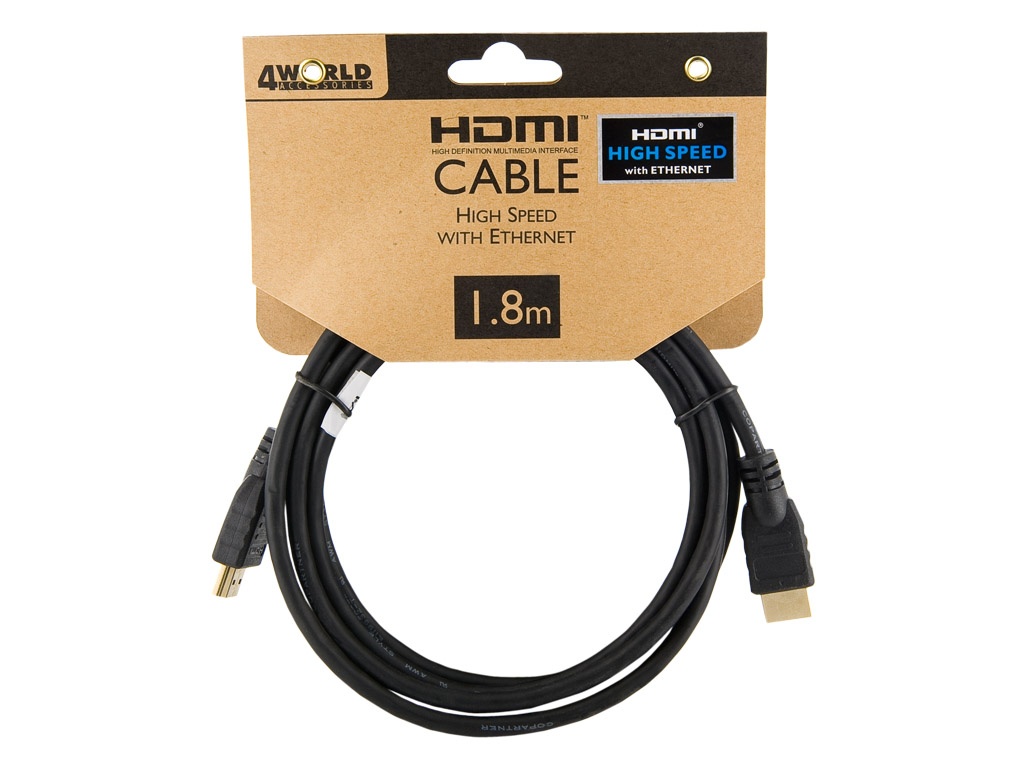 4W Kabel HDMI 1.4 High Speed Ethernet 1.8m Black