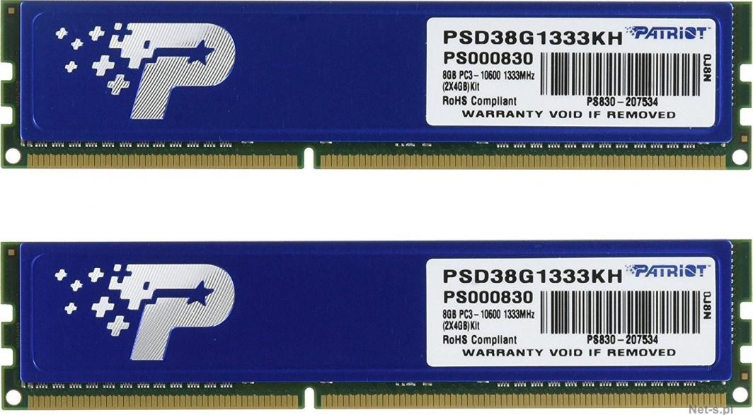 8GB DDR3 1333MHz Patriot CL9 kit 2x4GB s chladičem