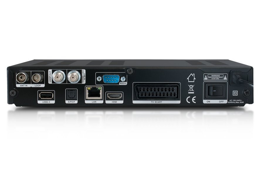 Porty: 1 x RF vstup, 1 x RF výstup, 1 x LNB vstup, 1 x LNB výstup, 1 x sériový port, 2 x USB 2.0, 1 x optický výstup zvuku, 1 x RJ-45, 1 x HDMI, 1 x SCART