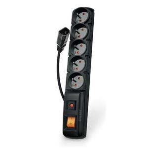 5 zásuvek s uzemněním. Použití síťové zásuvky IEC 60320 C14 určuje jeho profesionální použití a použití