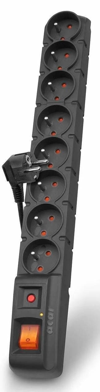 Acar S8 5m kabel, 8 zásuvek, přepěťová ochrana, černá