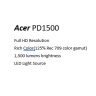 PD1500, LED, FHD (1920x1080), 1500 ANSI, 5000:1, HDMI, repro 1x5W, 2.3Kg, LumiSense, Acer Blue Light Shield, ColorSafe II, životnost lampy 20 000h, 360st projekce, nízká hlučnost 26db