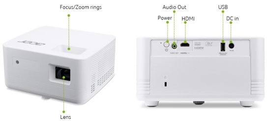 PD1500, LED, FHD (1920x1080), 1500 ANSI, 5000:1, HDMI, repro 1x5W, 2.3Kg, LumiSense, Acer Blue Light Shield, ColorSafe II, životnost lampy 20 000h, 360st projekce, nízká hlučnost 26db