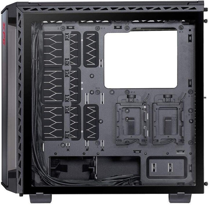 Vnitřní uspořádání je navrženo s ohledem na budoucí upgrady. Podporuje řadu základních desek (až 300 mm / E-ATX), grafických karet (až 400 mm), vertikálních duálních GPU a doplňkových ventilátorů (až tři 120 mm ventilátory a jeden 360 mm chladič vpředu nebo nahoře). Inteligentní správa kabelů vám pomůže udržovat pořádek.