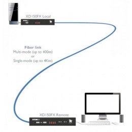 The ADDERLink® XD150FX high-performance KVM (Keyboard, Video, Mouse) transmits high resolution video, USB 2.0 and audio signals up to 4km (2.5miles), complemented with support for a wide range of USB devices. Critical hardware can be located in a secure, temperature controlled environment with the same desktop experience is maintained through real-time, lossless extension to the user work station.