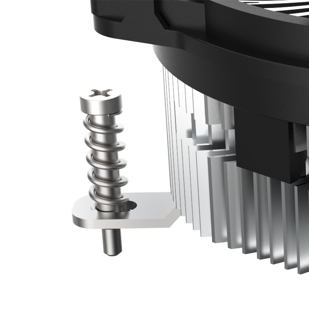 Chladič měděného jádra pro procesory Intel LGA 1700 s otevřeným 90mm ventilátorem s dvojitým kuličkovým ložiskem PWM pro tiché a spolehlivé chlazení. Pro snadnou montáž a mimořádně bezpečné uchycení jsou použity kovové šrouby a přídržná deska.