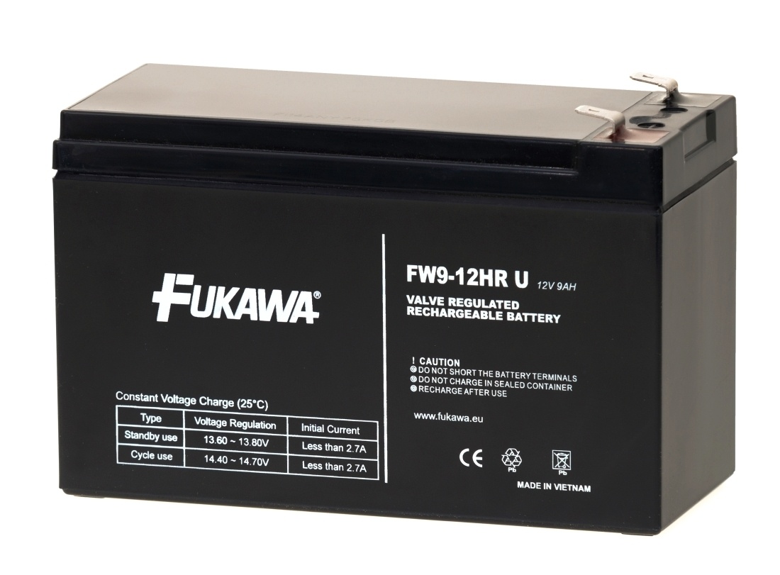 FUKAWA FW 9-12 HRU je hermeticky uzavřený, záložní, bezúdržbový olověný akumulátor určený pro záložní zdroje UPS a jiné elektronické systémy. Baterie FUKAWA mají vysokou kvalitou zpracování, jsou velmi spolehlivé a jsou tak nejlepší variantu v poměru cena/výkon. Díky jejich unikátní konstrukci je lze provozovat v libovolné poloze a nevyžadují žádnou údržbu.