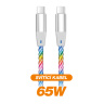 Duhově svítící LED kabel řady ALIGATOR POWER s kovovými konektory USB-C/USB-C nejvyšší kvality, o výkonu 65W a možností nabíjení až 3A.