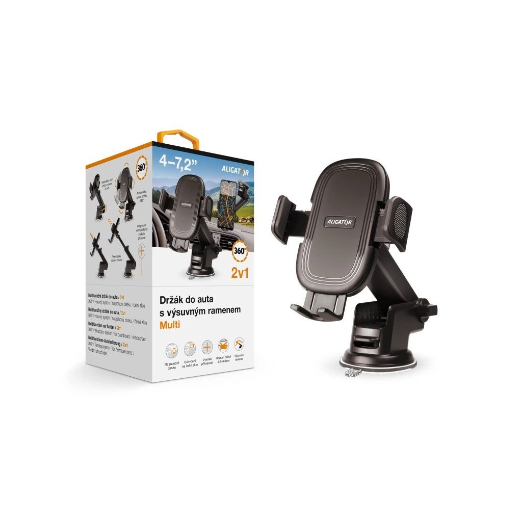 Držák do auta s výsuvným ramenem ALIGATOR Multi na čelní sklo a palubní desku, univerzální