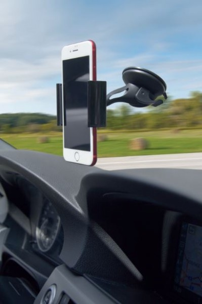 Univerzální držák pro mobilní telefony s uchycením pomocí přítlačných roztahovacích ramen. Díky tomuto přítlačnému systému lze ovládat jednou rukou. Možnost natočení mobilního telefonu v plném rozsahu 360°. Držák lze umístit na čelní sklo, ale i na palubní desku s pomocí speciální nano-podložky v balení.