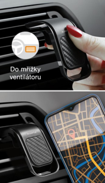 Kovový magnetický držák pro mobilní telefony do auta v designovém karbonovém provedení. Díky integrovanému silnému magnetu lze zafixovat telefon prakticky jakýchkoliv rozměrů. Pomocí šetrného, ale přitom spolehlivého mechanismu, lze snadno připevnit k ventilační mřížce bez rizika jejího poškození.