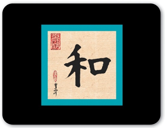 - Černá s ústředním motivem vyobrazujícím čínský znak pro "Harmonii"
