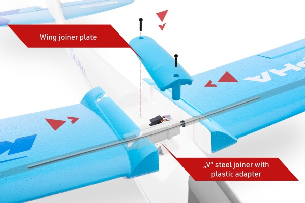 Modré letadlo na dálkové ovládání ALPHA 1500V2 ARFALPHA 1500V2 ARF je elegantní motorový větroň s velkou nosnou plochou a ovládanými křidélky, směrovkou i výškovkou. Poháněný je výkonným střídavým motorem. Robustní, ale zároveň velmi lehká konstrukce z pěnového EPO zaručuje vynikající odolnost. Materiál zvládne i menší letový neúspěch, navíc ho snadno opravíte pomocí vteřinového lepidla pro RC modely. Větroň je určený pro začátečníky a rekreační letce. Letové vlastnosti jsou příjemné, nezáludné a ovládání modelu přesné. Na křídlech naleznete LED osvětlení. Rozpětí je 1492 mm, délka 985 mm a hmotnost 780 - 810 g.ALPHA 1500 vs. APLHA 1500V2Ačkoliv si ALPHA 1500V2 designově zachovává rysy původní ALPHY 1500 jedná se o zcela nový model s odlišnými rozměry, novým profilem křídla a daleko propracovanější konstrukcí. Nové formy a pokrok v technologii lisování pěnových plastů zaručují, že všechny díly jsou daleko jemnější a přesnější. Dvoudílné křídlo se nyní k trupu upevňuje šrouby stejně jako ocasní plochy, takže model je velmi skladný. O třídu výkonnější motor s 30A regulátorem a 3S Li-Po akumulátorem namísto původního dvoučlánku poskytují dostatek výkonu nejen pro běžné poletování s motorovým větroněm, ale i pro základy akrobacie. ALPHA 1500 V2 ARF poroste spolu s vámi a vašimi pilotními schopnostmi.Odolný model s regulátorem KAVAN R-30BTrup s namontovaným motorem C2835-1200, regulátorem KAVAN R-30B a servy směrovky a výškovky zaručují skvělé letové vlastnosti. Kryt kabiny je odnímatelný s magnetickým uzávěrem. Dvoudílné křídlo je rovněž vylisováno z EPO materiálu, křidélka jsou ovládána 2 servy uloženými v křídle s krátkými drátovými táhly. Poloviny křídla spojuje spojka ze 4 mm ocelového drátu. Ocasní plochy v klasickém uspořádání jsou ovládány pomocí drátových lanovodů. K trupu se upevňují pomocí dvojice šroubů. Sklopná vrtule 8,5 x 5 ″ (průměr je dán kuželem většího průměru s delším trámcem) používá standardní listy 8 x 5 ″. Chlazení motoru, regulátoru a akumulátoru napomáhají další vstupy chladícího vzduchu na bocích přídě. Nezbytný výstupní otvor pro ohřátý vzduch je na spodku trupu v prostoru pod křídlem.Příprava k letuPříprava k letu zahrnuje pouze přišroubování ocasních ploch, spojení polovin křídla a jejich upevnění k trupu, zapojení přijímače a připojení pohonného akumulátoru. Ovládána jsou křidélka, směrovka, výškovka a otáčky motoru. Náročnost stavby je S0.Ovládání větroněK ovládání modelu budete potřebovat alespoň 4kanálovou RC soupravu, ideální je však použití 5kanálové počítačové RC soupravy. Tato souprava umožní nezávislé ovládání obou serv křidélek pro snadné nastavení diferenciace jejich výchylek a popř. mixování jako aerodynamické brzdy. Ovládání modelu si můžete dále zpříjemnit naprogramováním dvojích nebo exponenciálních výchylek.Model vás seznámí s plnohodnotným řízením okolo všech 3 os se správným koordinovaným ovládáním směrovky, křidélek i výškovky. Změnou poměru délek pák na servech a kormidlech můžete nastavovat velikosti výchylek ve velkém rozmezí. Začátečník začíná s malými a bezpečnými výchylkami i při nadměrném kormidlování. Zatímco zkušený pilot si nastaví velké výchylky, které umožňují základy akrobacie s motorem i bez něj. Díky výkonnějšímu motoru jdou přemety, sudové výkruty nebo souvratové zatáčky velmi snadno. Výkon motoru je dostatečný pro svižné stoupání, takže pro lov termiky budete potřebovat jenom chvilku. ALPHA 1500 V2 citlivě reaguje i na slabou termiku, snadno se díky přesnému řízení kolem všech os usazuje i do stoupavého komína o malém průměru.Zprovoznění modeluKe zprovoznění modelu budete potřebovat minimálně 4kanálovou RC soupravu (vysílač a přijímač), Li-Po akumulátor 11,1 V s kapacitou 1000 - 1300 mAh a zatížitelností alespoň 20C a vhodný nabíječ.Dodáváme také ve variantě ALPHA RTF (M2) nebo ALPHA RTF (M1) Obsah balení: Trup se střídavým motorem Sklopná vrtule Regulátor otáček Křídlo 4 serva LED světla Ocasní plochy Ocelová spojka křídla Technické parametry: Rozpětí: 149 Délka letadla: 98.5 Hmotnost: 780 Barva: modrá Kamera: ne