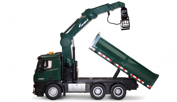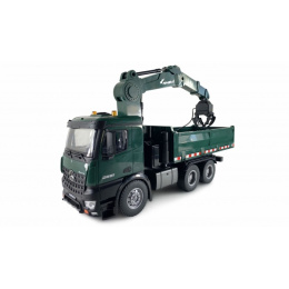Nakládací jeřáb Mercedes-Benz Arocs na dálkové ovládáníDalším modelem v naší kategorii RC strojů je propracovaný RC kamion s nakládacím ramenem a korbou. Nakládací jeřáb je vyroben v měřítku 1:14 a má plně ovladatelné rameno a 2 drapáky. Pracuje na frekvenci 2,4 GHz a má 16 funkcí. Jede vpřed, vzad a zatáčí jako skutečné auto. Všechny funkce jsou plně proporcionální (s výjimkou otáčení a otevírání/zavírání drapáku).Výkonný pohonStroj je vybaven nabíjecím akumulátorem Li-ion 7,4 V 1200 mAh, díky kterému může pracovat cca 20 minut na jedno nabití. Nabít ho pomocí USB nabíječky trvá 2 hodiny. Model pracuje na frekvenci 2,4 GHz s dosahem až 80 metrů. Maximální rychlost je 8-10 km/h. Vůz má ochranu proti poškození (převody přeskočí, pokud je náklad příliš těžký).Zvukové a světelné efektyVozidlo má vpředu a vzadu funkční blinkry a na střeše dvě žlutá výstražná světla. Kromě toho je v modelu instalován vypínatelný zvukový modul, který realisticky reprodukuje jízdní funkce, včetně výstražného zvuku zpětného chodu.Vyměnitelné drapákyBalení obsahuje drapák na dřevo a drapák na kov. Oba drapáky lze jednoduše vyměnit. Všechny strany sklápěcí korby lze otevřít a využít ji tak i pro přepravu většího nákladu.Terénní pneumatikyStředně velká kola jsou z měkké gumy s hlubokým vzorkem, vhodná i do náročnějšího terénu. Díky proporcionálnímu řízení a jeho síle je model schopný pomalu vyjet i náročný kopec či hromadu hlíny.Pro zprovoznění budete potřebovat pouze 4 x AA tužkové baterie do vysílače, které nejsou součástí balení. Obsah balení: RC Nakládací jeřáb Mercedes-Benz Arocs Ovladač Drapák na dřevo Drapák kovošrot Akumulátor Nabíjecí USB kabel Technické parametry: Měřítko: 1/14 Konstrukce auta: stroj Délka auta: 49 Šířka auta: 15.5 Výška auta: 30 Hmotnost auta: 2450 Auto je vhodné na ven: ano Barva: Zelená Auto je vhodné do interiéru: ano Rychlost auta: 8 Kapacita akumulátoru v autě: 1200 Napětí akumulátoru v autě: 7.4 Typ akumulátoru do auta: Li-ion Typ nabíječky: USB Výměnný akumulátor v autě: ano Napájení ovladače k autu: 4xAA Doba jízdy auta: 20 Dosah ovládání auta: 80 Frekvence ovládání RC auta: 2,4Ghz Konstrukce ovladače k autu: Páčkový Plynulá regulace rychlosti: ano Plynulá řízení zatáčení: ano Voděodolnost (stříkající voda): ne Vodotěsnost (potopení): ne