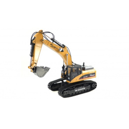 Pásový bagr na dálkové ovládáníBagr sice není obrandovaný, ale jedná se o maketový bagr Catterpillar. Jde o profesionální model, který je z 98 % z kovu. Má hmotnost cca 7 kg. Díky této hmotnosti má velkou rypnou sílu a lze s ním plnohodnotně maketově bagrovat. Ovládané funkce jsou proporcionální a každý pohyb lze extra samostatně řídit. Všechny části převodovky jsou vyrobené z kovu pro dlouhou životnost. Servo motory pro ovládání ramene jsou navrženy formou šroubovice, tudíž síla je tak násobena pro maximální výkon a těžkou práci. Kvalita a detailní provedení tohoto modelu jsou vzhledem k ceně unikátní. Elektronika je navíc chráněna před stříkající vodou.RC bagr s drapákem a bouracím kladivemModel je vybaven výkonným LED osvětlením, i pro noční provoz. Zvukový modul zajišťuje věrnou imitaci zvuků velkého bagru. Specialitou je i vypínatelný kouřový modul, tento vyvíječ kouře simuluje kouř z výfuku. V balení je také funkční kovový drapák a funkční kovové bourací kladivo. Model tak lze během chvilky přestavět. Bagr je ovládán na frekvenci 2,4 GHZ, celkově má vysílač 23 kanálů, pro ovládání každé funkce zvlášť. Budete do něho potřebovat 3 x AA baterie. Technické specifikace:- Konstrukce: 98% celokovový (z technických důvodů jsou některé drobné díly z plastu)- Pohon: Kovové pásy, individuálně ovladatelné- Počet kanálů: 23 kanálů- Baterie: LI-ION 7,4V 2000 mAh- funkce: vpřed, vzad, vlevo, vpravo,- Nástavba vlevo, nástavba vpravo, hlavní výložník nahoru/dolů, toporo (přední výložník) nahoru/dolů,- Lžíce nahoru/dolů, světlo, zvuk, demo režim- Generátor kouře lze zapnout/vypnout                       - Každý pás individuálně ovladatelný, otáčení na místě, otáčení během jízdy- Zapnutí/vypnutí zvukuBagr je k dispozici i v bílé barvě.  Obsah balení: rypadlo 1:14 kovové RTR v transportním kufru dobíjecí baterie 7,4V Li-Ion 2000 mAh   vysílač 2,4 GHz USB nabíječka uživatelská příručka kovové bourací kladivo kovový drapák šroubovák Technické parametry:  Měřítko: 1/14  Konstrukce auta: bagr  Délka auta: 70  Šířka auta: 48  Výška auta: 18  Hmotnost auta: 7000  Auto je vhodné na ven: ano  Barva: žlutá  Auto je vhodné do interiéru: ano  Kapacita akumulátoru v autě: 2000  Napětí akumulátoru v autě: 7.4  Typ akumulátoru do auta: Li-ion  Typ nabíječky: USB  Napájení ovladače k autu: 3xAA  Frekvence ovládání RC auta: 2,4Ghz  Konstrukce ovladače k autu: Páčkový