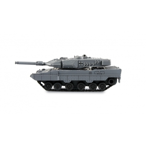 Mini tank na dálkové ovládání Leopard II IR 1:72 RTRPředstavte si ten vzrušující okamžik, když se vydáte na bitevní pole s nezastavitelnou silou mini tanku Leopard II - a to vše v pohodlí vašeho domova. Tento detailně propracovaný model tanku v měřítku 1:72 přináší neuvěřitelně realistický zážitek z bitevní akce, kterou si zamilují děti i dospělí nadšenci do vojenské techniky a modelářství.Mini tank Leopard II není jen hračkou, ale je to plnohodnotný zážitek, který vás vtáhne do světa strategií a taktik. Tank je dodáván v robustním set-up boxu s průhledným krytem, který ho činí perfektním doplňkem do vaší vitríny, když se zrovna nepoužívá.Bojové efektyMini tank Leopard II IR je vybaven autentickými zvuky motoru, které okamžitě navodí atmosféru skutečného bojiště. Navíc výborně simuluje střelbu a zpětný ráz. Pokaždé, když stisknete tlačítko střelby, pocítíte ten vzrušující moment zpětného rázu a uvidíte realistické světelné efekty. Součástí mini tanku na dálkové ovládání je infračervený bojový modul. Ten vás zapojí do napínavých soubojů s ostatními tanky ze série 1:72. Při zásahu se protivník otočí, a když je zasažen pětkrát, je dočasně vyřazen z provozu.Až 15 minut v boji a přívětivé ovládáníVestavěná Li-Ion 1S 3,7 V 120 mAh baterie poskytuje 10-15 minut nepřetržité jízdy na jedno nabití. Nabíjecí kabel USB-C přispívá k snadnému a rychlému dobíjení. Tank je ovládán ovladačem na frekvenci 2,4 GHz s dosahem 15-20 metrů. Budete do něho potřebovat 2 x AA baterie. Bezdrátová technologie zajišťuje bezproblémový přenos signálu bez rušení. Ovládání je intuitivní a umožňuje vám manévrovat tankem vpřed, vzad, zatáčet a otáčet věží s mimořádnou precizností. Obsah balení: Model Mini tank Leopard II 1:72 Dálkové ovládání USB nabíjecí kabel Technické parametry: Délka: 13 Šířka: 5.5 Výška: 4.5 Hmotnost: 73 Vhodný na ven: ne Vhodný do interiéru: ano Kapacita akumulátoru: 120 Napětí akumulátoru: 3.7 Typ akumulátoru do tanku: Li-ion Typ nabíječky: USB Dosah ovládání: 20 Osvětlení: ano Typ střelby: infra Měřítko: 1/72