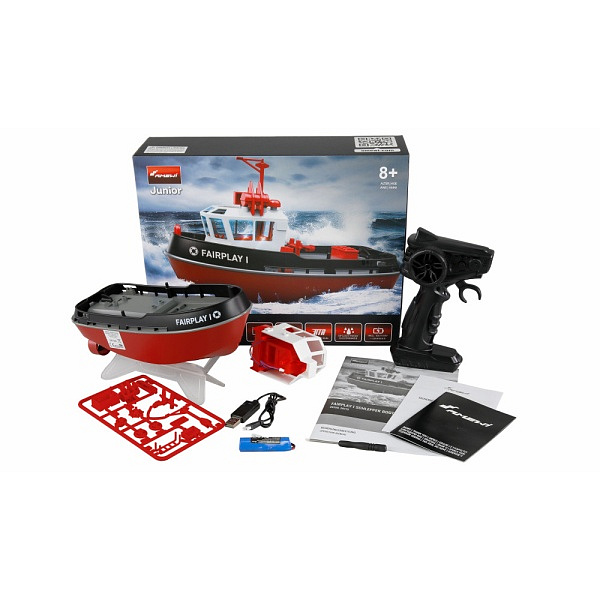 Obsah balení: RC remorkér Fairplay - černý Dálkové ovládání 2,4 GHz Baterie Li-Ion 1S 3,7V 600mAh 15C Nabíjecí USB kabel Sada nářadí Přídavné díly Technické parametry: Délka: 22.5 Šířka: 9.5 Výška : 10 Výdrž: 12 Kapacita akumulátoru: 600 Napětí akumulátoru: 3.7 Typ akumulátoru: Li-ion Typ nabíječky: USB Výměnný akumulátor: ano Napájení ovladače: 2xAA Barva: Červená Proporcionální plyn: ano Proporcionální zatáčení: ano LED osvětlení: ano Dosah: 35 Vodotěsnost: ano