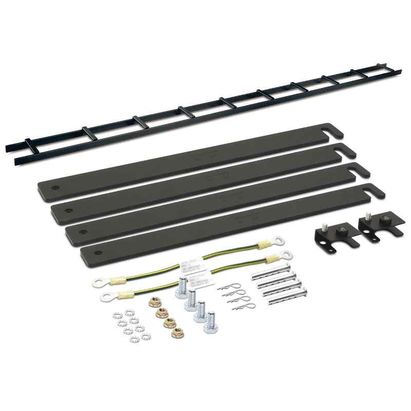 Zahrnuje: (1) Žebřík, (2) Zemnicí spojky 203 mm, (2) Zemnicí svorky, (4) Svorka, Materiál pro paralelní nebo kolmé napojení