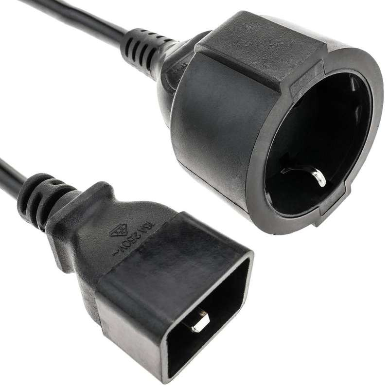 Napájecí kabel C20 vidlice na Schuko zásuvku, délka 0,5 metru