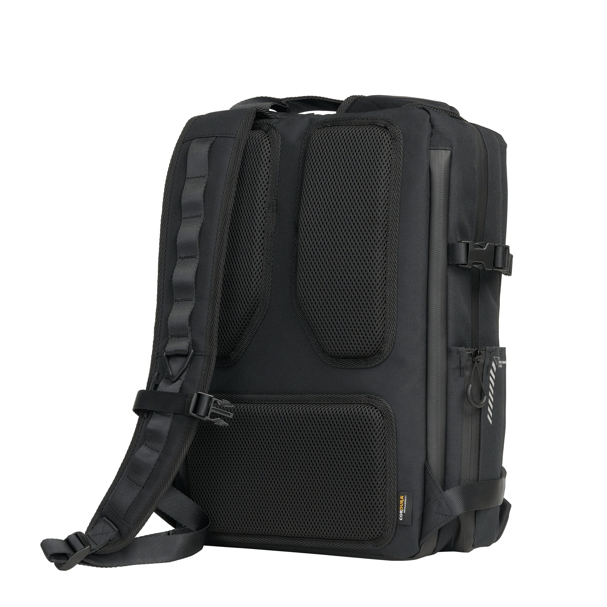 Skryté kapsy pomáhají uchovávat cennosti v bezpečí během cestování nebo dojíždění. Boční stabilizační přezka určená pro lahve a deštníky se také promění v diskrétní zámek proti krádeži.