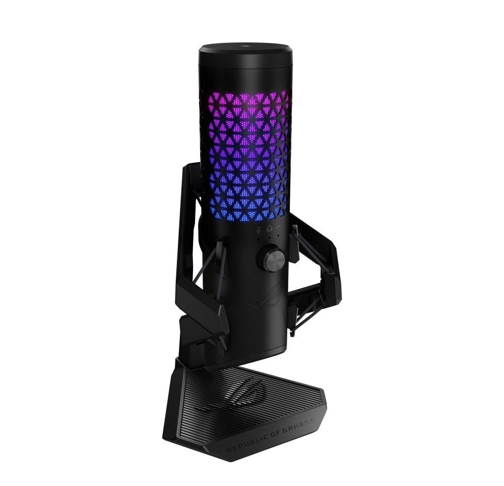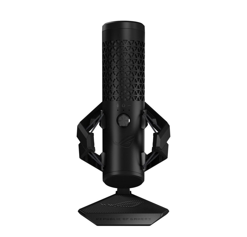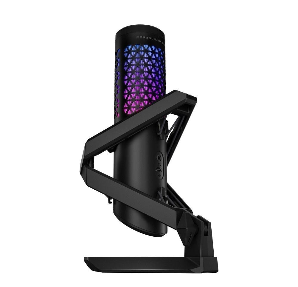 Profesionální kardioidní kondenzátorový herní mikrofon je vybaven 25mm kondenzátorovou kapslí studiové kvality, vzorkovací frekvencí 192 kHz/24 bitů, vysokofrekvenčním filtrem, integrovaným pop filtrem, prémiovým kovovým držákem a osvětlením ASUS Aura Sync RGB.