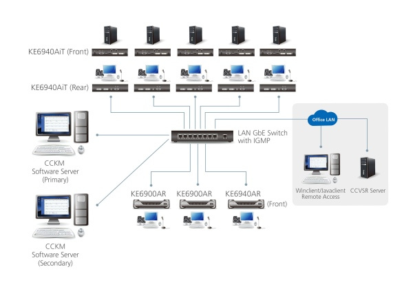 Jako maticový extender založený na protokolu IP lze KE6900AiT používat jako extender typu bod-bod / bod-více bodů / vícebodový extender nebo integrovat do maticového systému KVM over IP (vícebodový systém) v kombinaci se softwarem KE Matrix Management Software (CCKM), což poskytuje flexibilnější aplikace v různých pracovních prostředích.