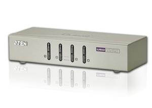 ATEN CS-74U 4-Port USB KVM přepínač je jednotka, která umožní uživateli ovládat čtyři počítače z jedné KVM konzole (klávesnice a myš, audio a VGA monitor). Přepíná se na předním panelu pomocí tlačítek. Přepínač není nutno nijak nastavovat, stačí zapojit kabeláž a zařízení je připraveno k použití.