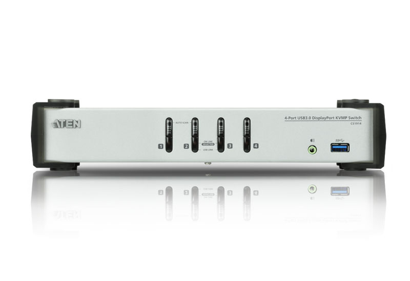 Aten CS1914 4-port DisplayPort KVMP 3.0 prepínac umožní jednomu uživateli sdílet ctyri pripojené pocítace za pomocí jedné klávesnice, myši a monitoru.