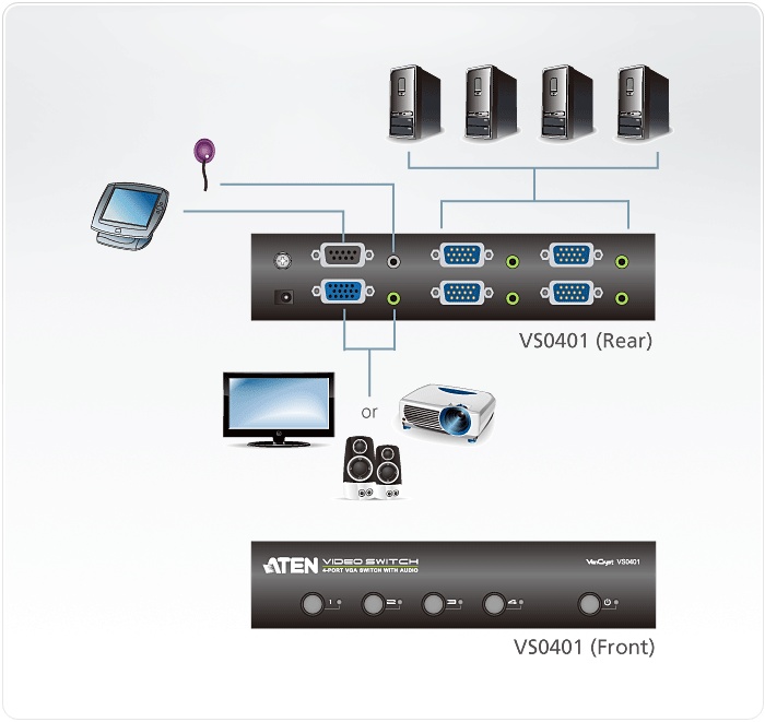 ATEN 4-port VGA Video/Audio elektronický přepínač