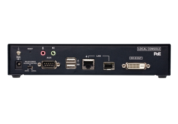 KE6912 podporuje připojení prostřednictvím portu RJ-45 nebo slotu SFP. Vysílač a přijímač lze připojit buď přímo k sobě, nebo prostřednictvím vysokorychlostní sítě, a to přes měděnou nebo optickou síť LAN, což zajišťuje nepřetržitou dostupnost vzdáleného přístupu k serverům. Pro připojení prostřednictvím slotu SFP podporuje extender rozšíření optického modulu SFP* o rychlosti 1 Gb/s, což umožňuje připojení prostřednictvím optické sítě a prodloužení přenosové vzdálenosti až na 10 km.