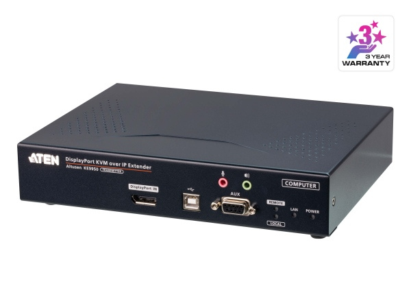 Rozšiřovač KE9950 4K DisplayPort Single Display KVM over IP se skládá z vysoce výkonného vysílače KE9950T založeného na protokolu IP, který se připojuje k počítači, a přijímače KE9950R, který zajišťuje přístup ke konzole z odděleného místa. KE9950 umožňuje přístup k počítačovému systému ze vzdálené konzoly USB (klávesnice USB, myš USB, monitor DisplayPort) přes intranet, což uživatelům umožňuje umístit počítače do zabezpečeného a teplotně kontrolovaného prostředí, které je izolováno od pracovní stanice uživatelů.