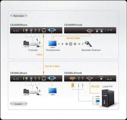 Výstupní jednotka KVM Extender CE350 a PS/2 s automatickou kompenzací signálu a sériovou funkčností RS-232 umožňuje přístup k počítačovým systémům ze vzdálené konzoly PS/2 (klávesnice PS/2, monitor a myš PS/2). Protože umožňuje přístup do počítačového systému ze vzdálené konzoly, CE350 je ideální pro použití v jakémkoli typu instalace, kde je třeba umístit konzoli tam, kde je pohodlně přístupná, ale chcete, aby systémové zařízení bylo umístěno na bezpečném místě - od prachu a nečistot z podlahy továrny nebo z drsného vlivu stavby na životní prostředí. To umožňuje uživatelům nasadit systémová zařízení na velké vzdálenosti.