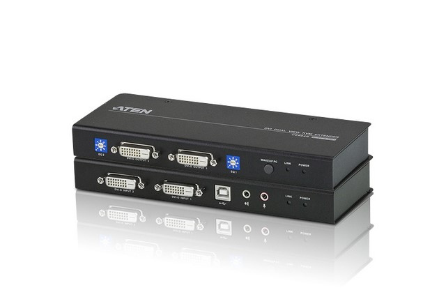 ATEN KVM extender CE-604 USB , Dual View (2 x DVI) audio a konzole extender s USB klávesnice myš+RS-232 port, (1024 x 768 na 60m)