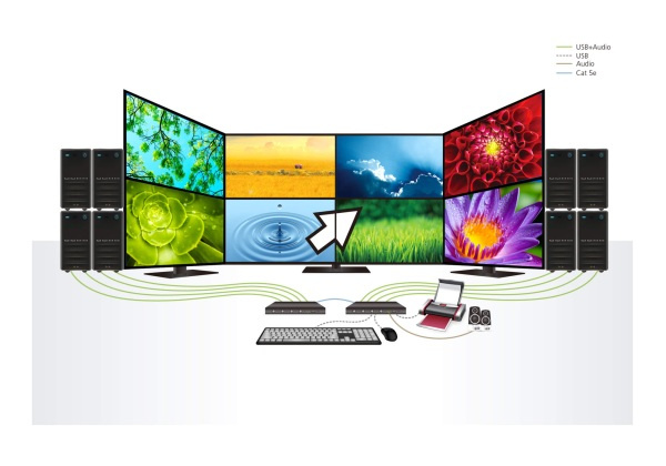 Vlastnosti: - Vhodný pro práci s počítači s velkým počtem obrazovek: