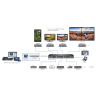 Nabízí multifunkční funkce v aplikacích pro rozšíření, rozdělovače, maticové spínače, video stěny a daisy