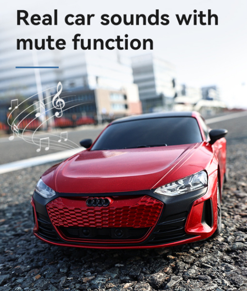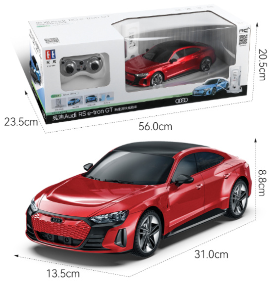 Elektromobil Audi RS na dálkové ovládáníVěrná replika nejmodernějšího elektromobilu na světe Audi RS e-tron GT, v nádherné metalicky červené metalíze, je vyrobená z odolných plastů s hladkými liniemi. Licencované RC auto na dálkové ovládání má nejen autentický vzhled, ale i skvělé jízdní vlastnosti a světelné i zvukové doprovodné funkce, které zajistí, že se od něj děti nedokážou odtrhnout. RC auto pro nejmenší Audi RS kombinuje luxus a zábavu v jednom! Krásná designová kola s gumovými pneumatikami zajišťují skvělou trakci na hladkém povrchu. Elektromobil jezdí plynule, velmi přirozeně rychlostí cca 2 km/h. Ovládání je páčkové, menší, velmi dobře se drží v rukou. Ovládání není nijak složité, bez problémů si s ním poradí i ti nejmenší. Je to skvělý dárek pro děti.RC auto pro dětiE-tron Audi RS je nejen jednoduchý na ovládání, ale také je vybaven LED osvětlením a zvukovým modulem. O takovém autě sní každý malý kluk, ale díky krásnému, modernímu designu nezklame žádnou milovnici aut, proto ho řadíme i do kategorie RC modelů pro holky.RC auto se světelnými i zvukovými efektyRC auto je vybaveno předním i zadním LED osvětlením, přední světla v základním režimu svítí bíle a zadní červeně. Funkční jsou blinkry jak vepředu, tak vzadu spolu s varovnými světly při zpátečce. Blinkry jsou doprovázeny jemným klapavým zvukem a zpátečka typickým varovným signálem. Na dálkovém ovladači je možné zapnout i hudbu, na výběr jsou 4 známé melodie, které vám auto zahraje. Světla doprovází hudbu až 10-ti různými schématy. LED osvětlení není nijak zvlášť intenzivní, ale efektně dokresluje celý RC model. Dětmi velice oblíbený klakson nesmí chybět. Velmi originální je speciální tlačítko na ovladači pro parkovaní. RC auto dokáže samo zacouvat a zaparkovat.Pro rodiče máme dobrou zprávu, všechny zvukové efekty lze vypnout a z RC auta se stane opravdu tichý elektromobil.Originální nabíjeníRC auto je vybaveno integrovaným akumulátorem 3,7 V 1200 mAh, díky kterému si užijete spoustu zábavy po cca 30 minut. Velmi originální je nabíječka, která vypadá jako stojan pro nabíjení elektromobilů. Pomocí kabelu ji zapojíte do USB adaptéru a pomocí druhého do RC auta. Stačí jen otevřít ,,víčko nádrže,, a můžete nabíjet. Navíc je nabíjecí stojan vybaven světelnou signalizací, takže přesně vidíte vývoj nabíjení, které trvá cca 30 minut.Dálkové ovládání funguje na frekvenci 2,4 GHz, takže se vám nebude rušit s dalšími RC modely. Do ovladače potřebujete 2 x AA baterie. Obsah balení: RC auto Audi RS e-tron GT Dálkové ovládání USB nabíječka Integrovaný akumulátor Technické parametry: Konstrukce auta: Silniční Délka auta: 31 Šířka auta: 13.5 Výška auta: 8.8 Auto je vhodné na ven: ano Barva: červená Auto je vhodné do interiéru: ano Typ motorů v autě: stejnosměrné Rychlost auta: 2 Kapacita akumulátoru v autě: 1200 Napětí akumulátoru v autě: 3.7 Typ nabíječky: USB Výměnný akumulátor v autě: ne Napájení ovladače k autu: 2xAA Doba jízdy auta: 30 Frekvence ovládání RC auta: 2,4Ghz Konstrukce ovladače k autu: Páčkový Plynulá regulace rychlosti: ne Plynulá řízení zatáčení: ne Voděodolnost (stříkající voda): ne Vodotěsnost (potopení): ne