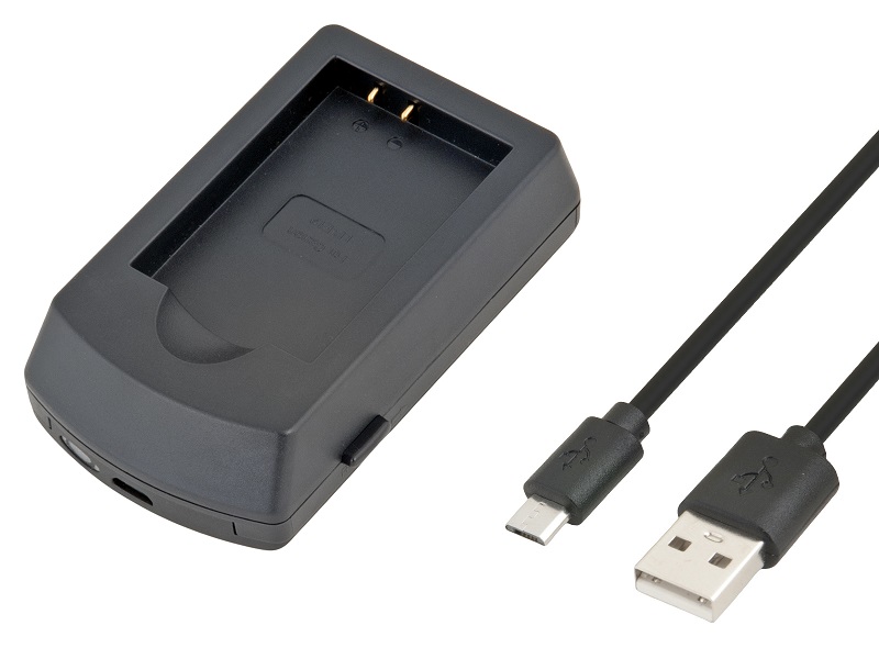 Nabíječka s Micro-USB vstupem pro baterie do fotoaparátů a videokamer.