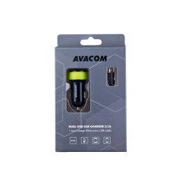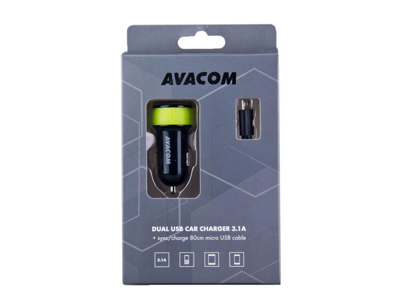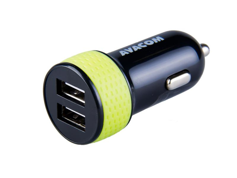 AVACOM nabíječka do auta se dvěma USB výstupy 5V/1A - 3,1A, černo-zelená barva