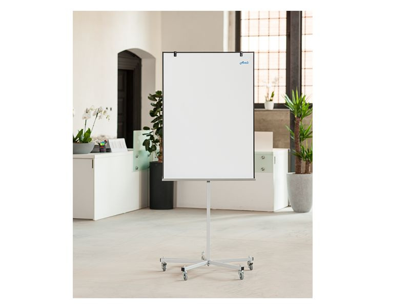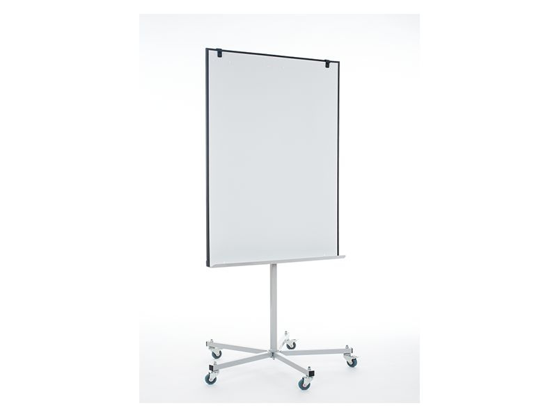 Mobilní skládací  flipchart s magnetickým povrchem. Má velmi stabilní základnu s pěti kolečky a ručně nastavitelnou výšku.