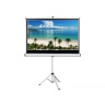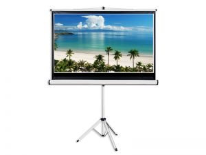 Mobilní projekční plátno vhodné pro digitální a zpětné projektory. Velmi stabilní základ na třech nohách, formát 16:9, matně bílé s černým orámováním.