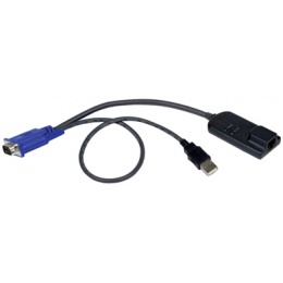 The MPUIQ-VMCHS module is designed to drastically reduce cable bulk. Use the MPUIQ-VMCHS module to convert keyboard, monitor and mouse signals from a server through a single CAT 5 cable (4-pair, up to 150 ft/45 m) to your switch. The MPUIQ-VMCHS dongle draws its power from the server and has Keep Alive functionality that will keep your server working properly with or without connectivity to the MergePoint Unity KVM over IP and serial console switch or Avocent DSR KVM switch.