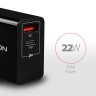 Dva výstupy Quick Charge 3.0 USB type A a Power Delivery 3.0 USB type C umožní rychlé nabíjení nejen smartphonů ale i tabletů a notebooků. Nabíječka je kompatibilní se standardy rychlého nabíjení telefonů Apple iPhone, iPad, Samsung, Huawei, Honor, Xiaomi, Motorola, Sony a dalších. Podporuje také 20W PD nabíjení pro iPhone 12, 13.
